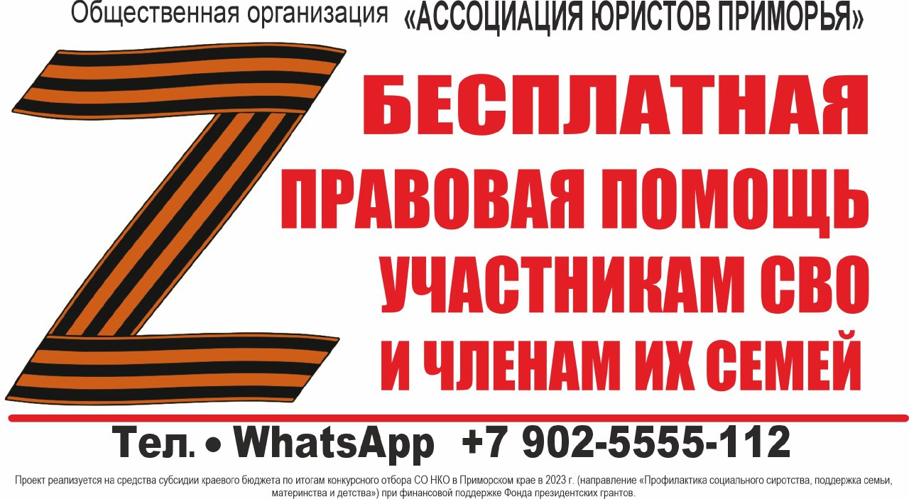 * Семинар проводится в рамках исполнения общественно значимой программы общественной организации «Ассоциация юристов Приморья» «Инновационные подходы в оказании правовой помощи семьям участников СВО в Приморском крае» (реализуется за счет средств субсидии краевого бюджета по итогам конкурсного отбора СОНКО в Приморском крае в 2024 г. (направление «Профилактика социального сиротства, поддержка семьи, материнства, отцовства и детства»), при финансовой поддержке Фонда президентских грантов).